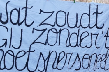 Deze voormiddag voerden een honderdtal poetsmedewerkers, studenten, vakbondsmensen en personeelsleden actie aan het rectoraat van de Universiteit Antwerpen. Ze brachten