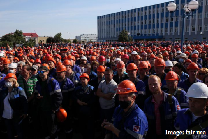 Vanaf begin augustus, nu al een maand lang, doet een ongeziene protestbeweging het presidentieel paleis van “de laatste dictator van Europa” daveren. De straatprotesten gaan gepaard met een stakingsbeweging van proportie. De stakende arbeiders hebben ook overkoepelende stakingscomités opgericht om hun eigen eisen naar voor te brengen. Deze verder ontwikkelen, zal nodig zijn om de beweging uit de invloedssfeer van de liberale Svetlana Tikhanovskaya en het gulzige Europese grootkapitaal te houden.